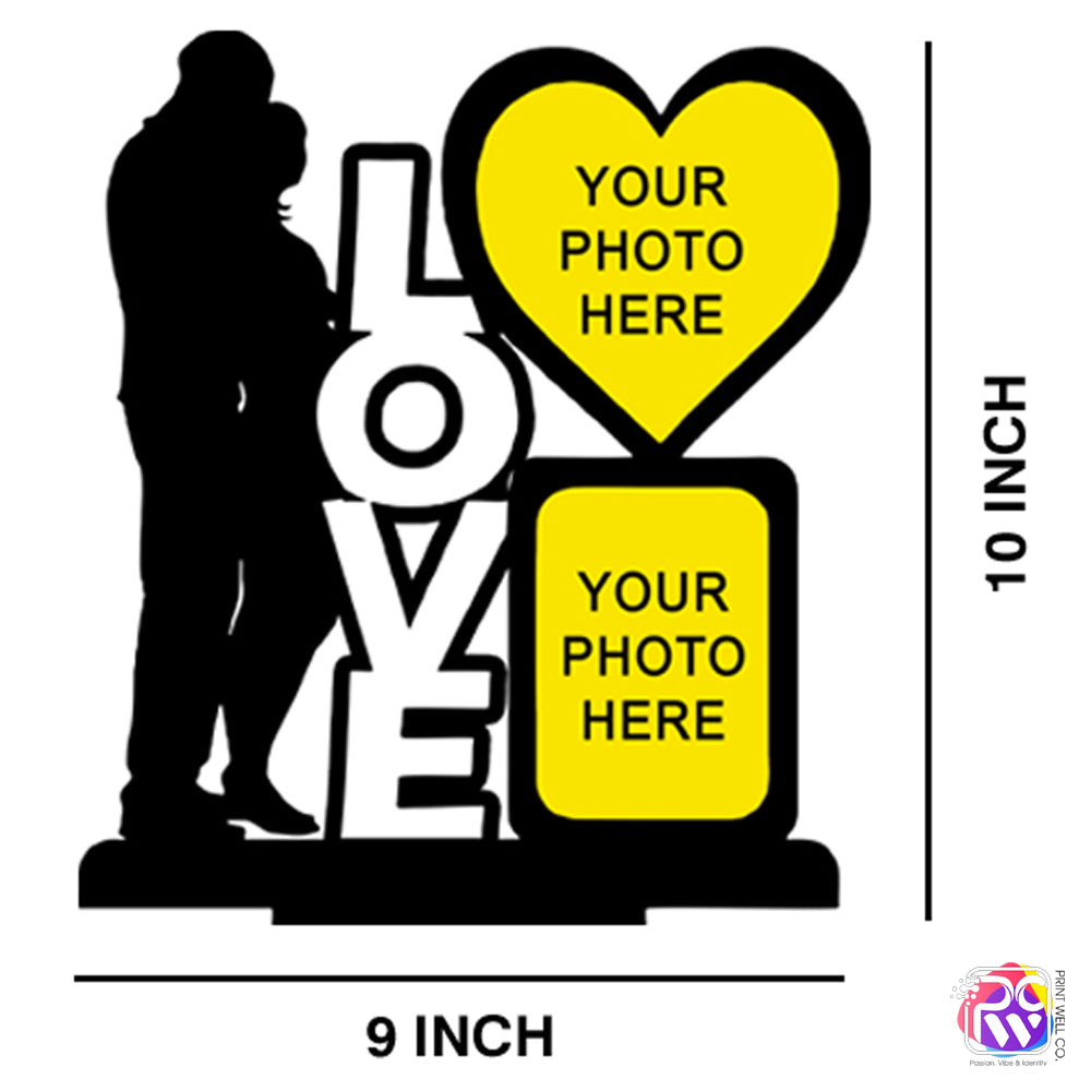 Celebrate your special bond with this Customized “LOVE” Tabletop Photo Frame, beautifully designed for couples. Measuring 9x10 inches, it features stylish typography with two photo slots — one heart-shaped and one rectangular — to showcase your favorite memories together.