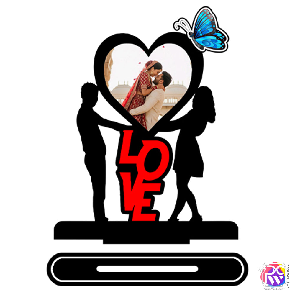 Customized “LOVE” Tabletop Photo Frame – Personalized Wooden Frame with Heart Photo Slot & Butterfly Design