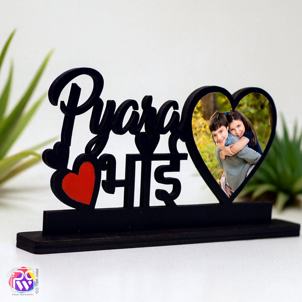 Customized “Pyara Bhai” Tabletop Photo Frame – Personalized Wooden Frame with Red Heart & Hindi Text