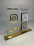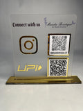 Elevate your boutique’s presence with this Customized Social Media & UPI QR Table Stand, thoughtfully designed for Maasha Boutique by Monika Khurana. This elegant display features a metallic gold Instagram logo and dual QR codes for instant social media connection and seamless UPI payments, combining modern convenience with refined aesthetics.