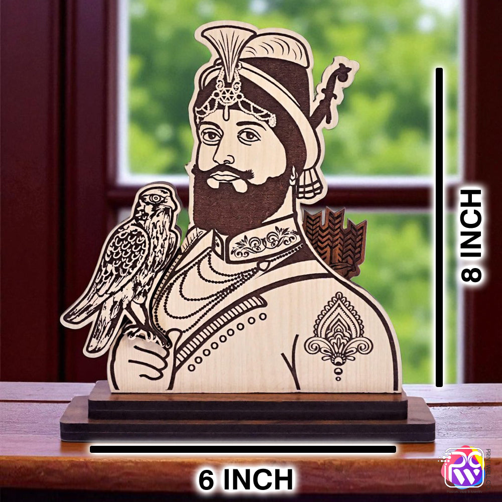 Honor the legacy of courage, wisdom, and spirituality with this Guru Gobind Singh Ji Wooden Tabletop. Measuring 8x6 inches, this beautifully engraved piece showcases the revered Sikh Guru holding a falcon, symbolizing strength, fearlessness, and divine grace.