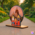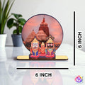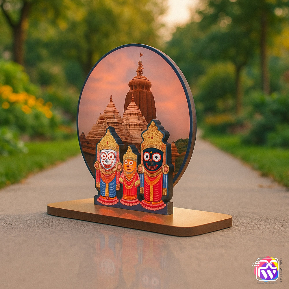 Add divine charm and positivity to your home or workspace with this Lord Jagannath Wooden Tabletop, beautifully featuring the sacred trio — Lord Jagannath, Balabhadra, and Subhadra with the iconic Jagannath Temple in the background. Measuring 6x6 inches, this elegant wooden piece reflects devotion, unity, and spiritual harmony.