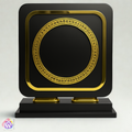 Elevate your recognition game with this Modern Black & Gold Trophy Plaque, a luxurious blend of minimalism and elegance. Designed with a sleek matte black surface and adorned with a finely detailed golden circular frame, this award plaque is a perfect canvas for engraving names, logos, or special messages.