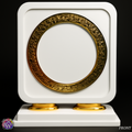 Design: Rounded-edge square plaque with ornate golden ring detailing